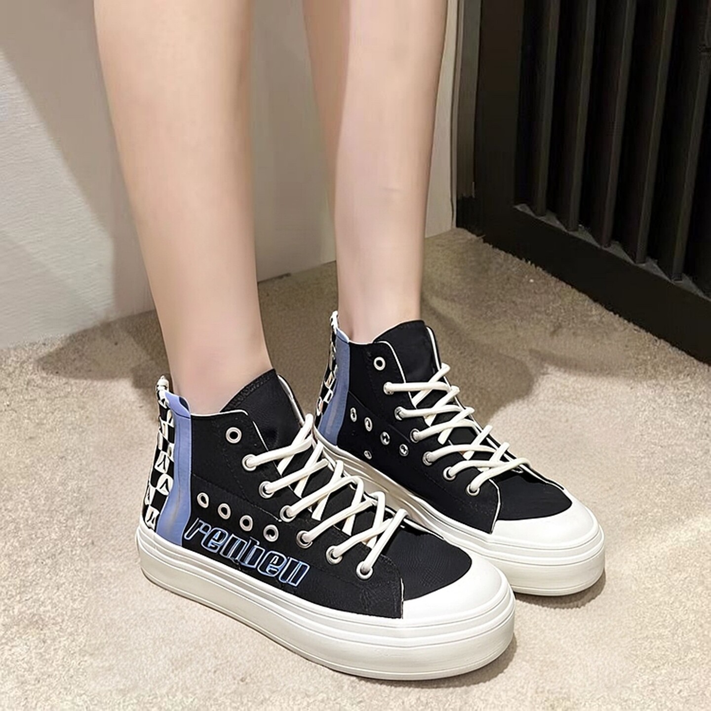 - 高帮白色帆布鞋女