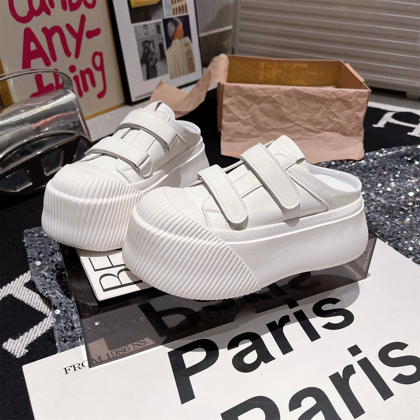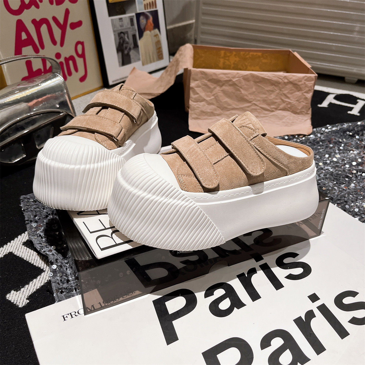 2026新款欧货米奇大头魔术贴厚底松糕包头半拖鞋一脚蹬休闲女鞋托