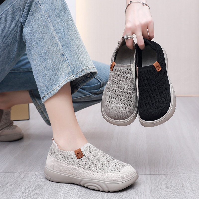 2025新款单鞋女超软透气软底舒适一脚蹬休闲女鞋不累脚坡跟瓢鞋女