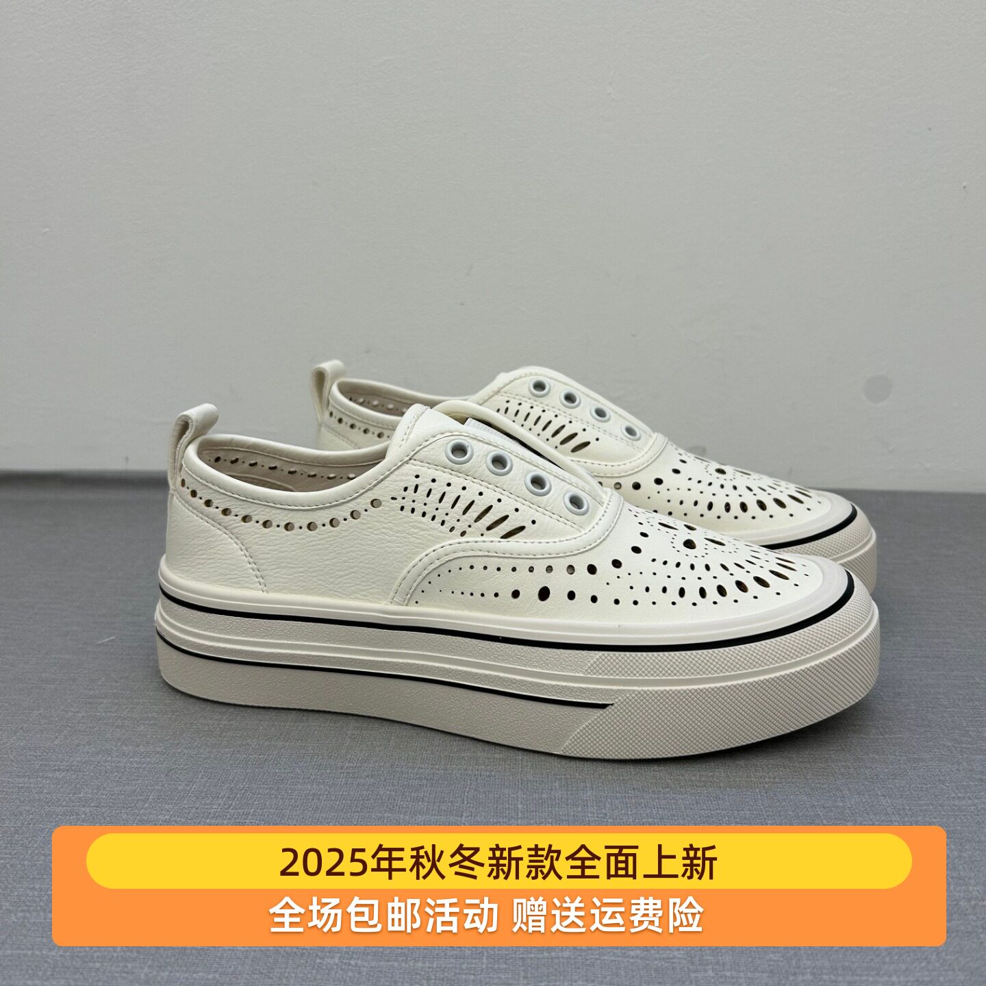 欧洲站2025年秋季新款牛皮小白鞋冲空透气厚底懒人一脚蹬休闲女鞋