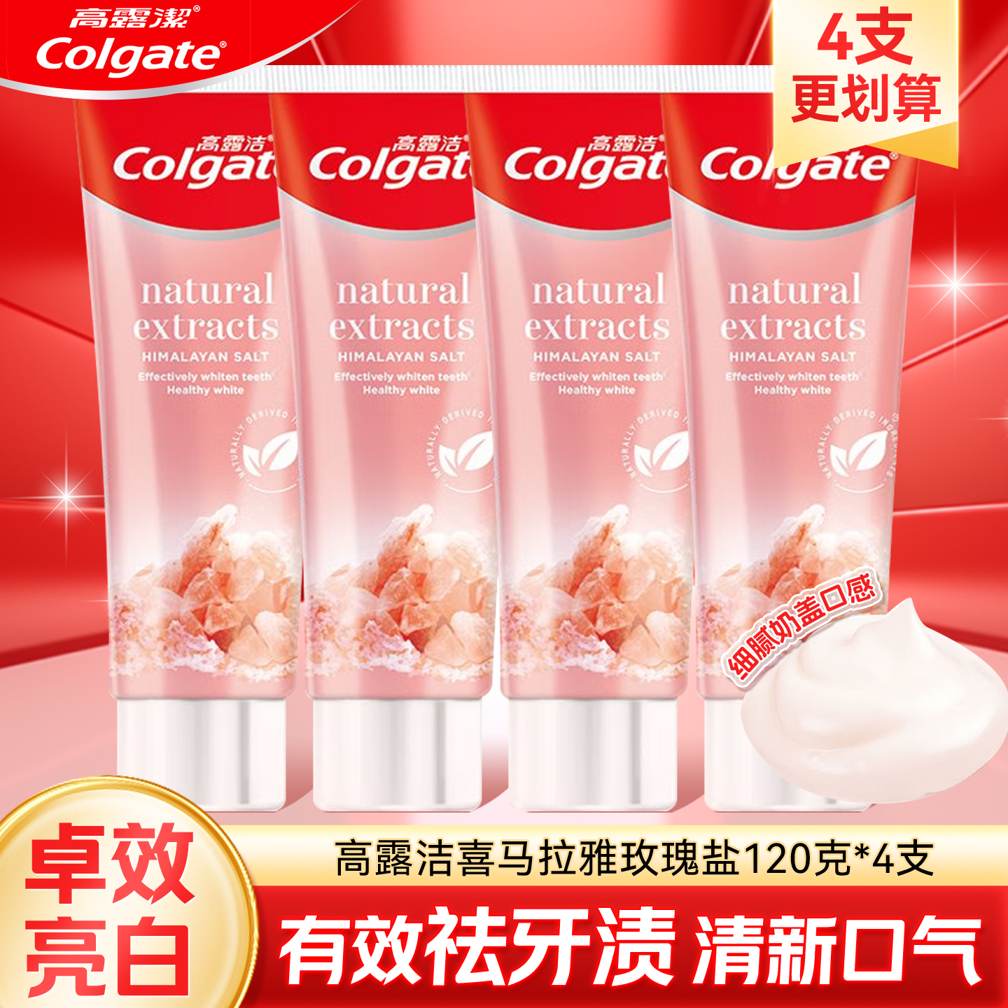 高露洁牙膏天然玫瑰粉盐120g成人美白含钠家庭实惠装家用官方正品