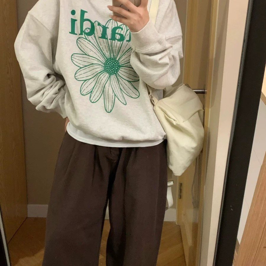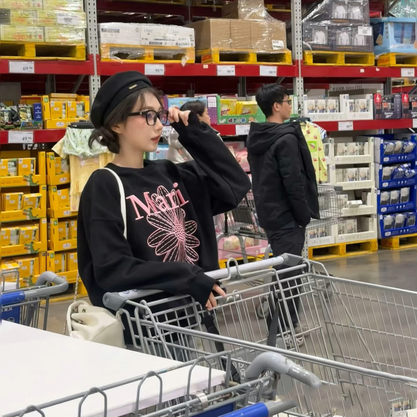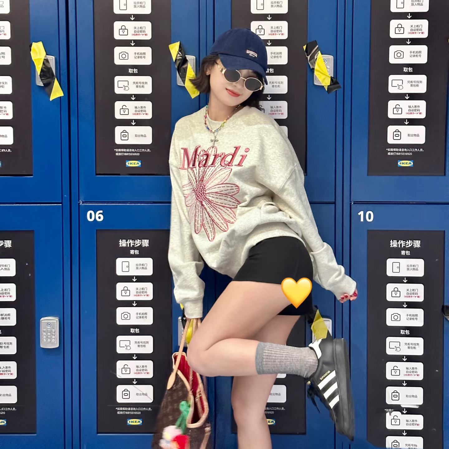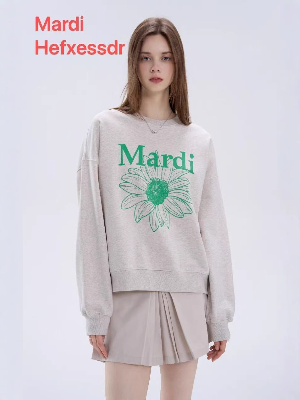 新款Mardi卫衣女金高银同款小雏菊印花慵懒风时尚美式复古圆领
