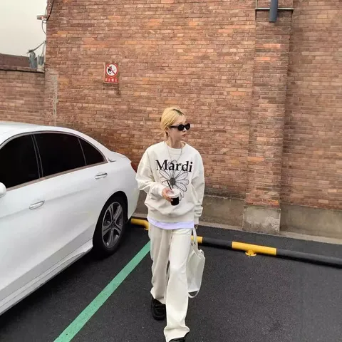 韩国Mardi上衣金高银同款卫衣刺绣小雏菊圆领运动款宽松休闲百搭