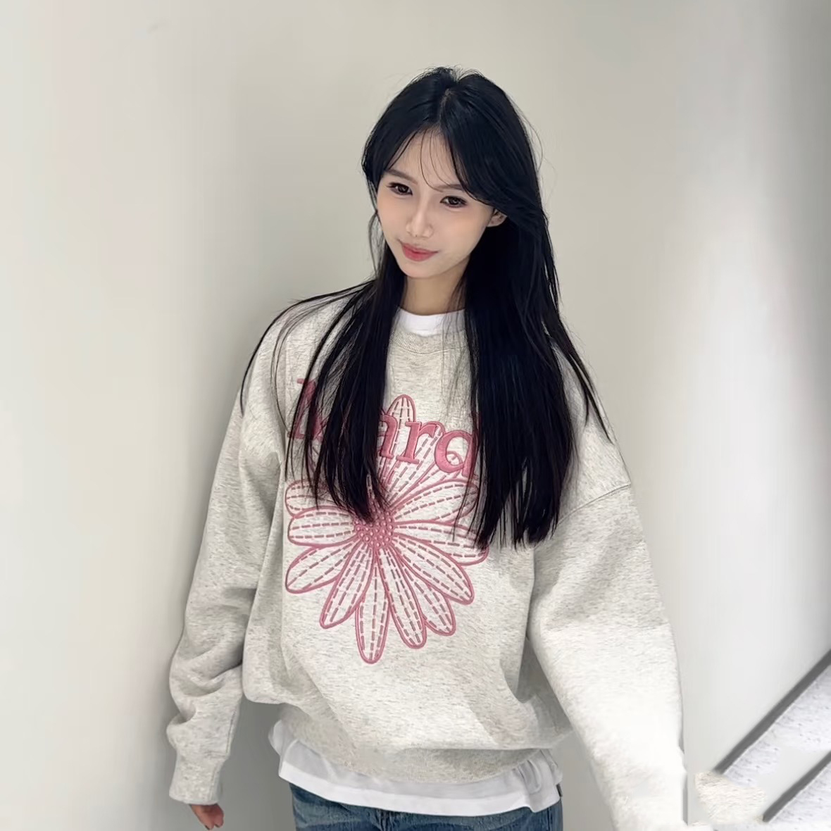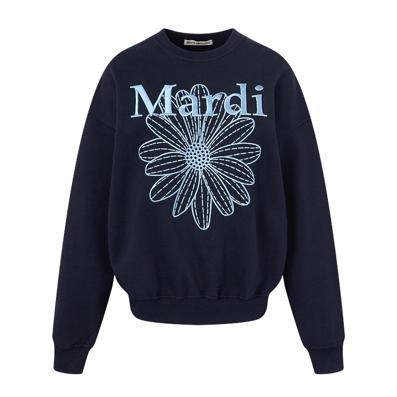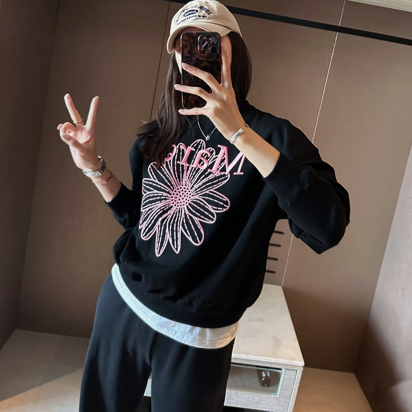 【韩国韩版】25新款Mardi卫衣小雏菊金高银同款印花刺绣圆领上衣