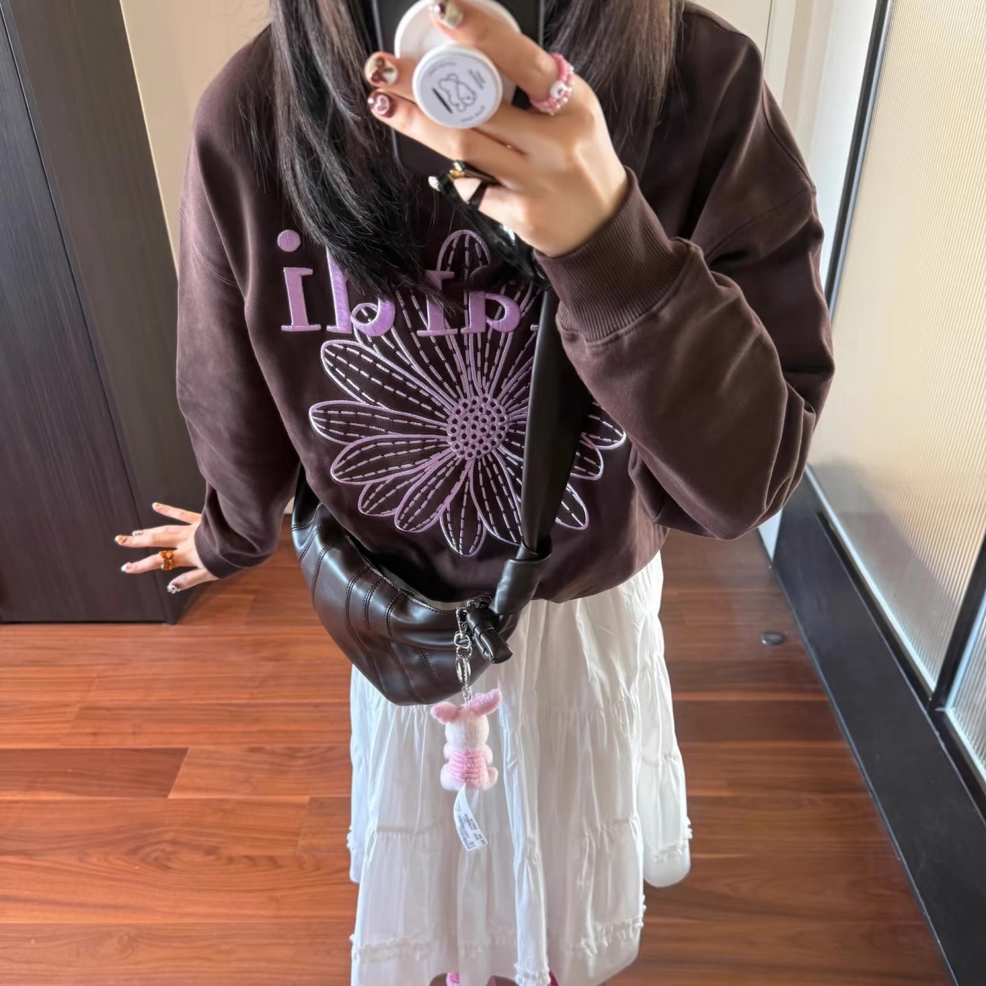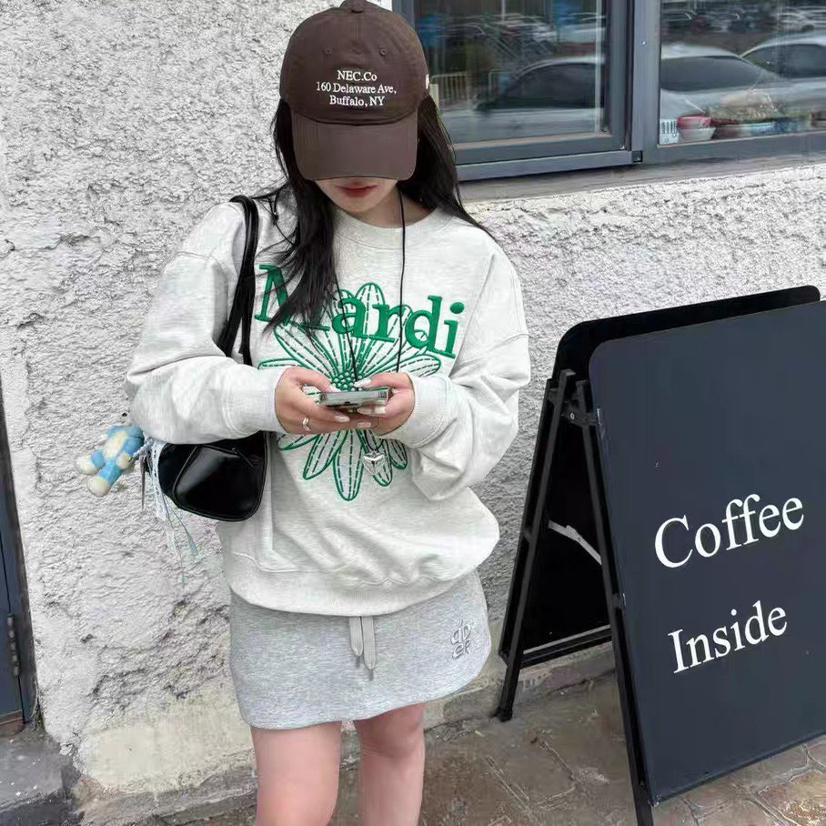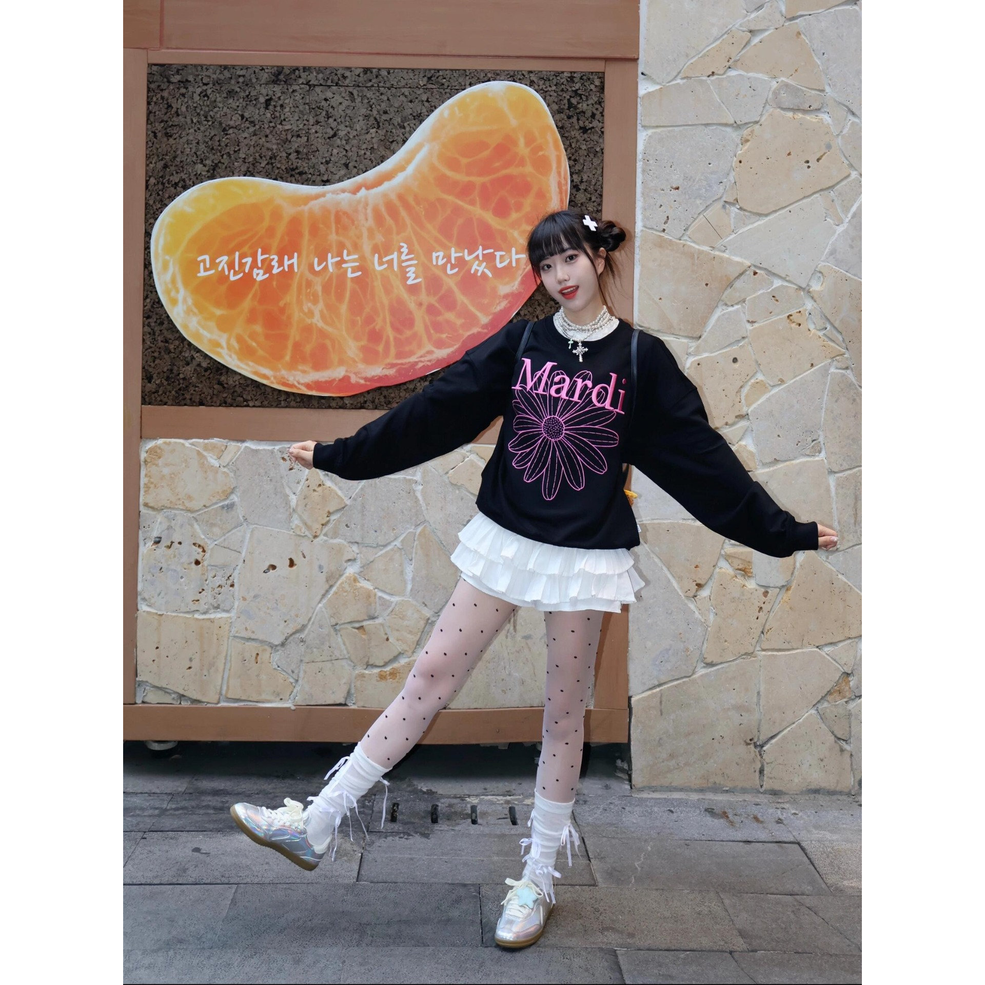 【韩国韩版】25新款Mardi卫衣小雏菊金高银同款印花刺绣圆领上衣