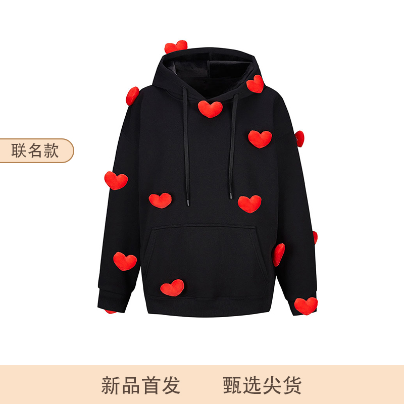 【金高银同款】韩2025年立体红色小爱心连帽卫衣情侣男女同款套头