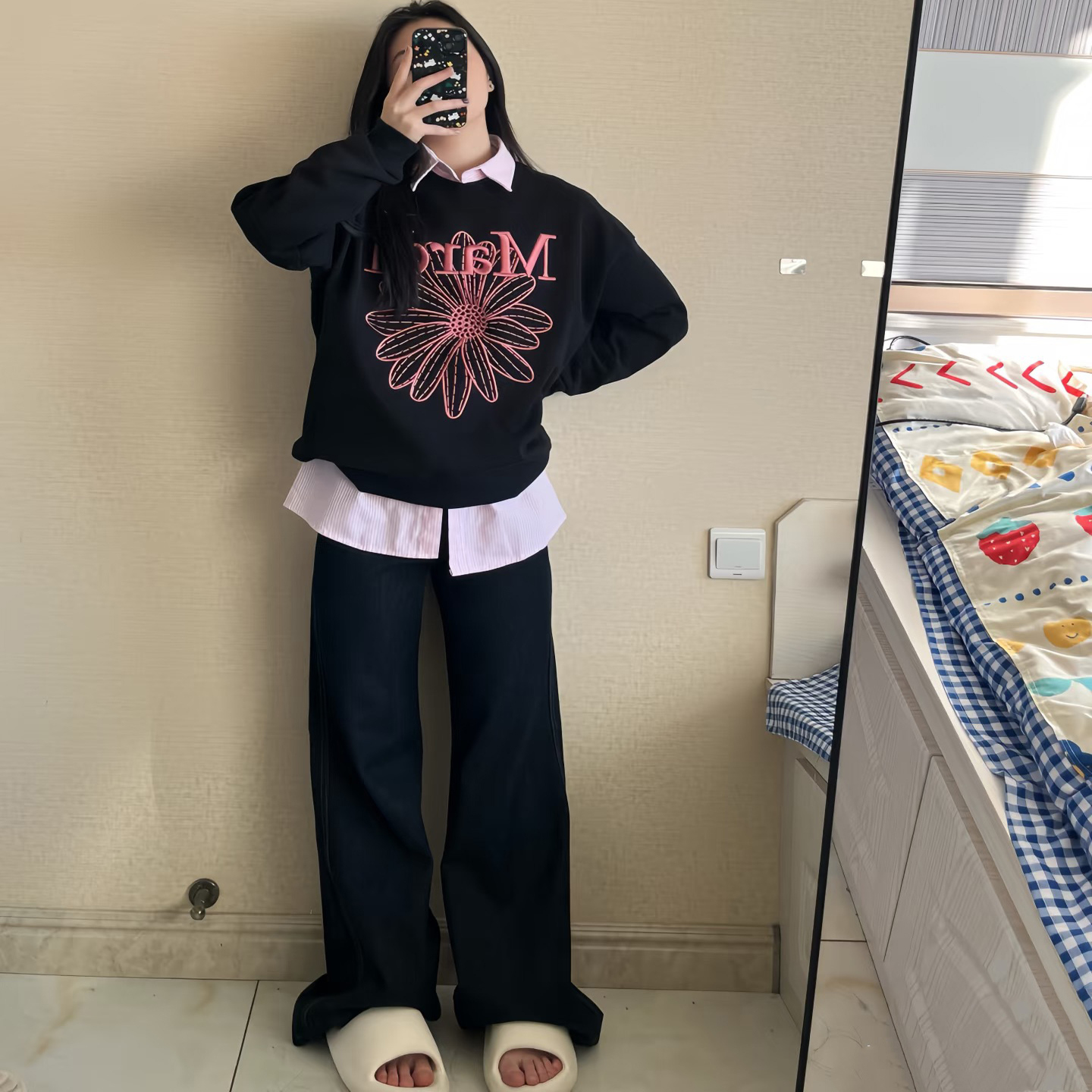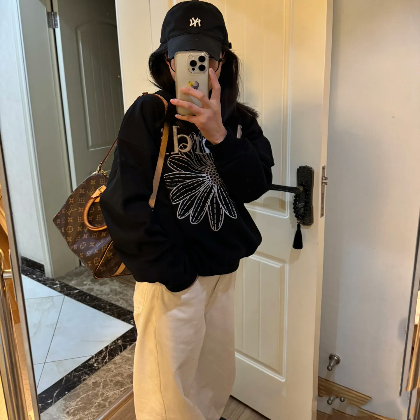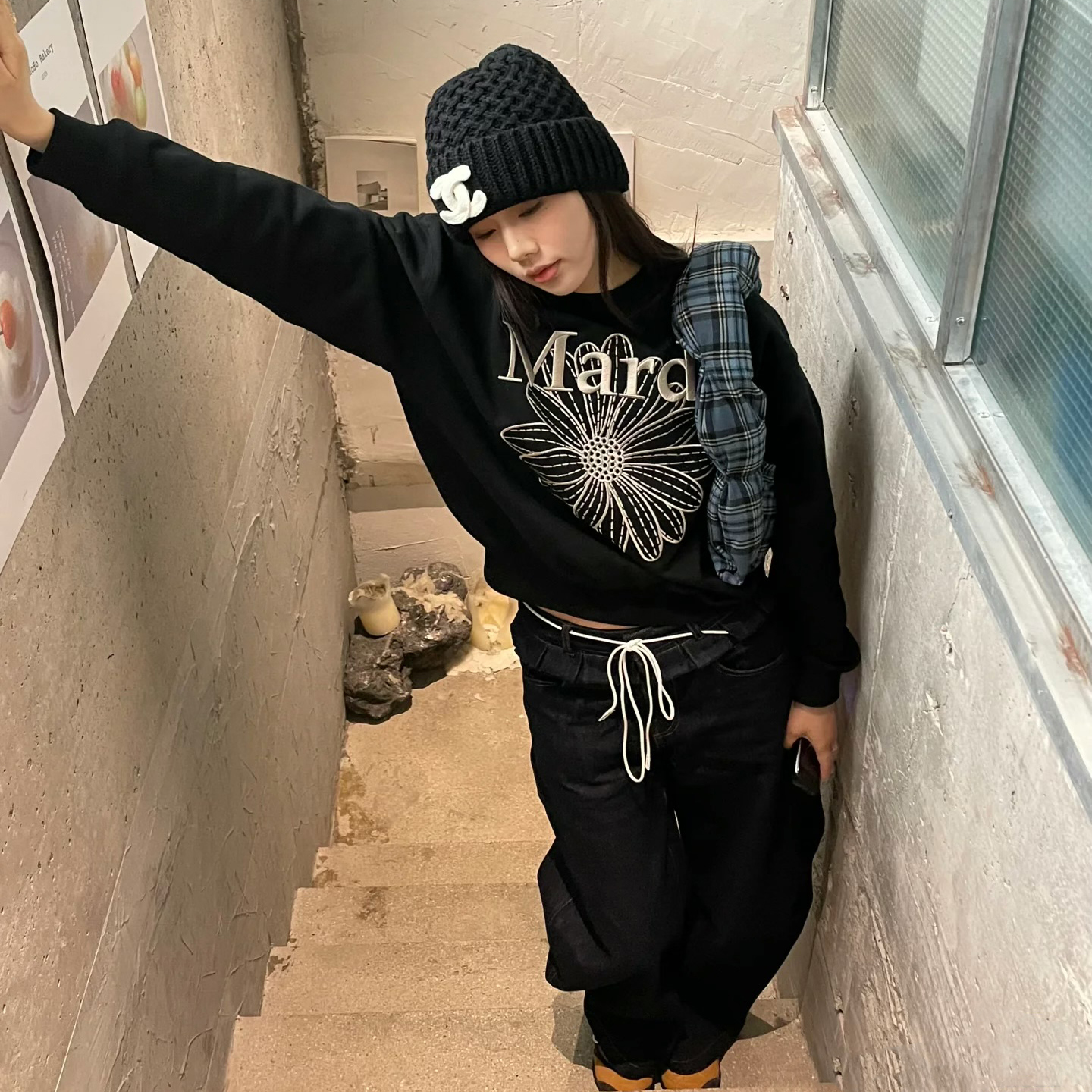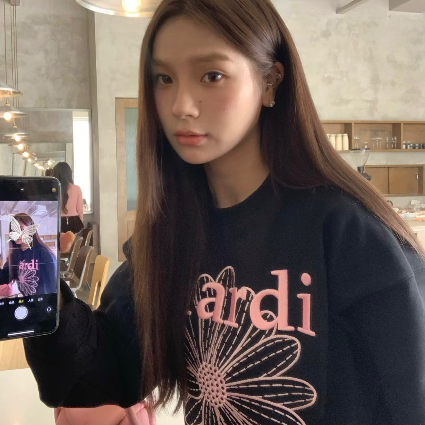 明星同款Mardi刺绣卫衣秋冬款小雏菊宽松复古圆领卫衣女金高银女