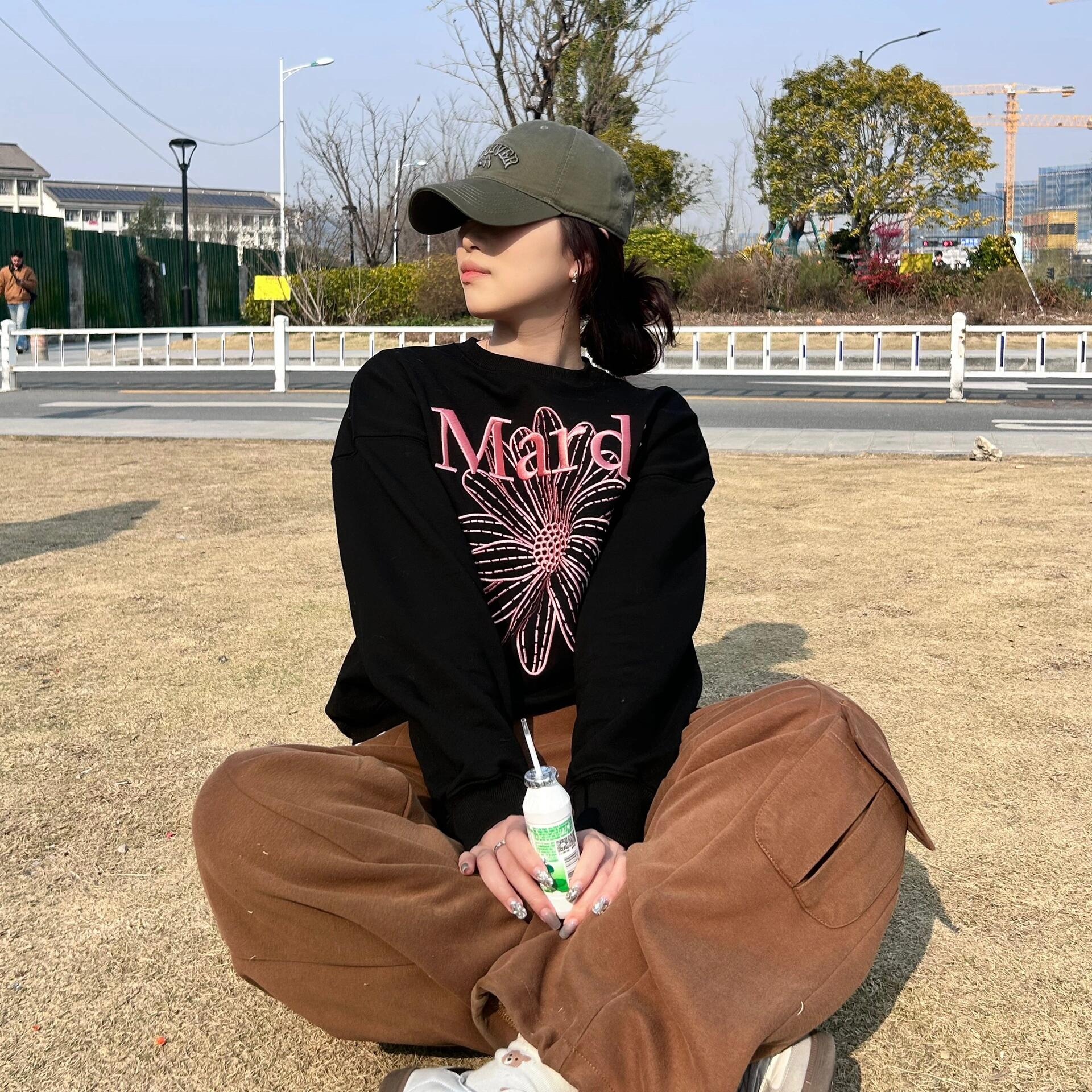 韩国Mardi卫衣女金高银同款小雏菊潮牌刺绣秋冬休闲圆领外穿上衣