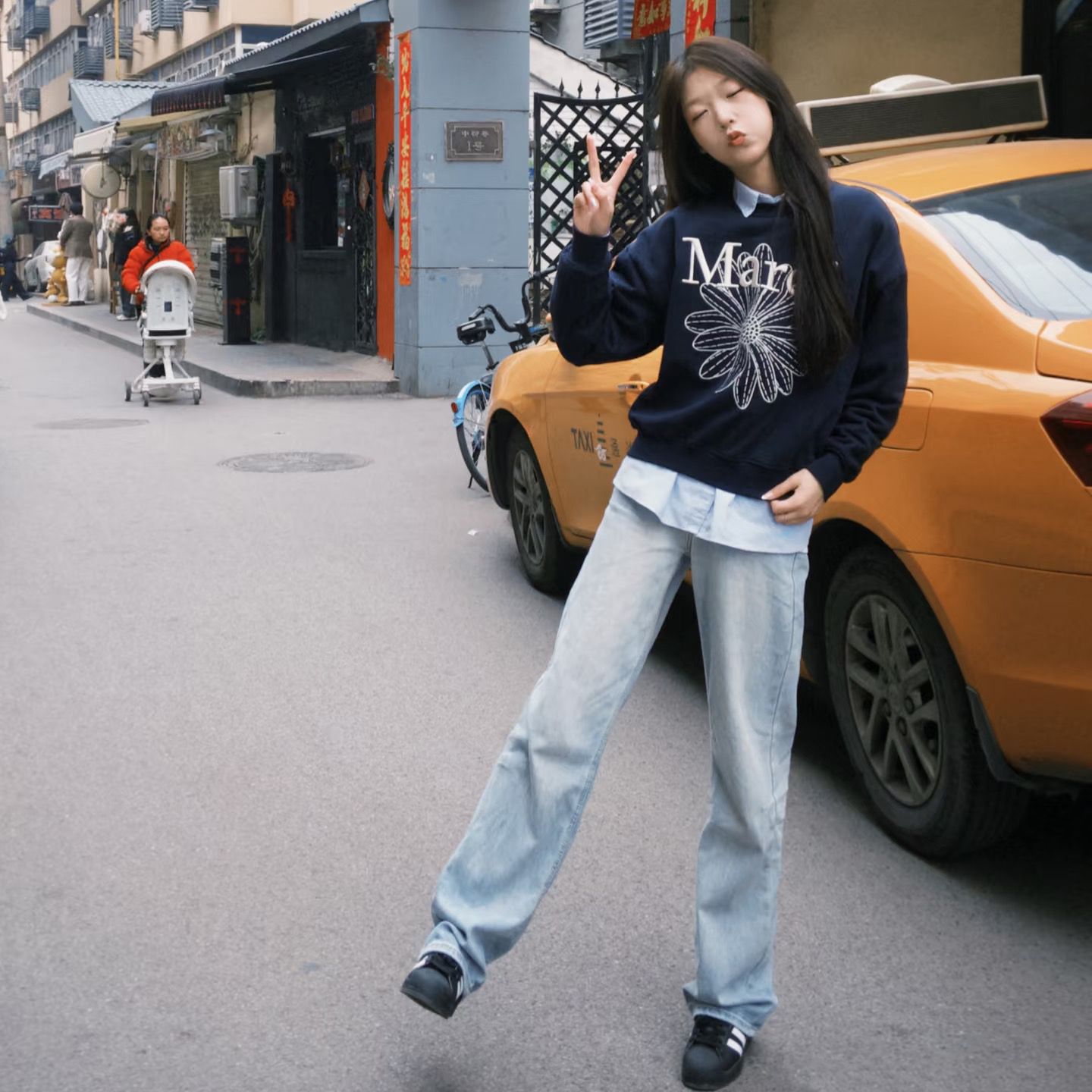 新款Mardi小雏菊卫衣赵露思同款金高银刺绣印花秋冬宽松圆领百搭