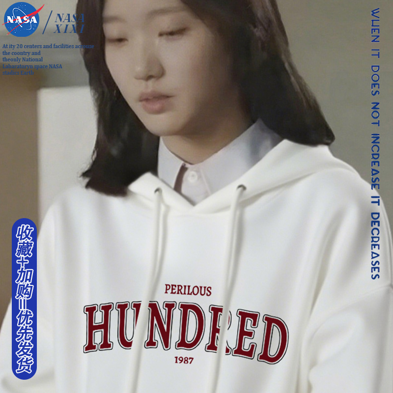 NASA金高银同款卫衣女连帽秋款2025新款宽松美式字母印花衣服外套