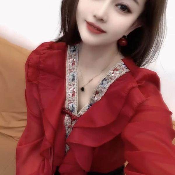别致优雅红色荷叶边打底衫女2025初春新款气质减龄百搭高级感上衣