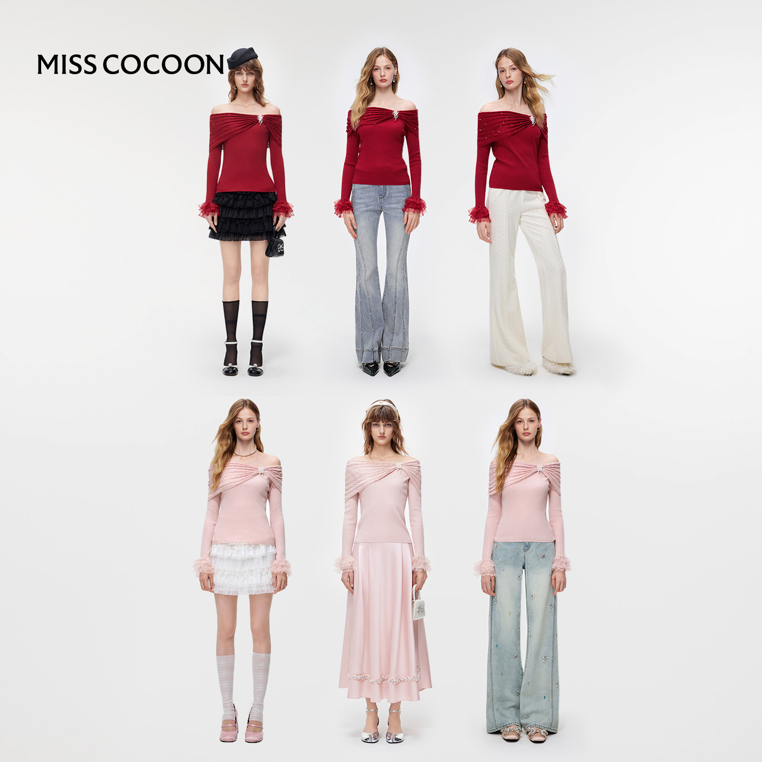 【七七酱专享】MISSCOCOON荷叶边打底衫粉色显瘦羊毛针织衫