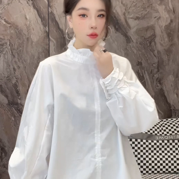 2025秋冬新款加绒衬衫女加厚可爱公主荷叶边打底上衣修身立领衬衣