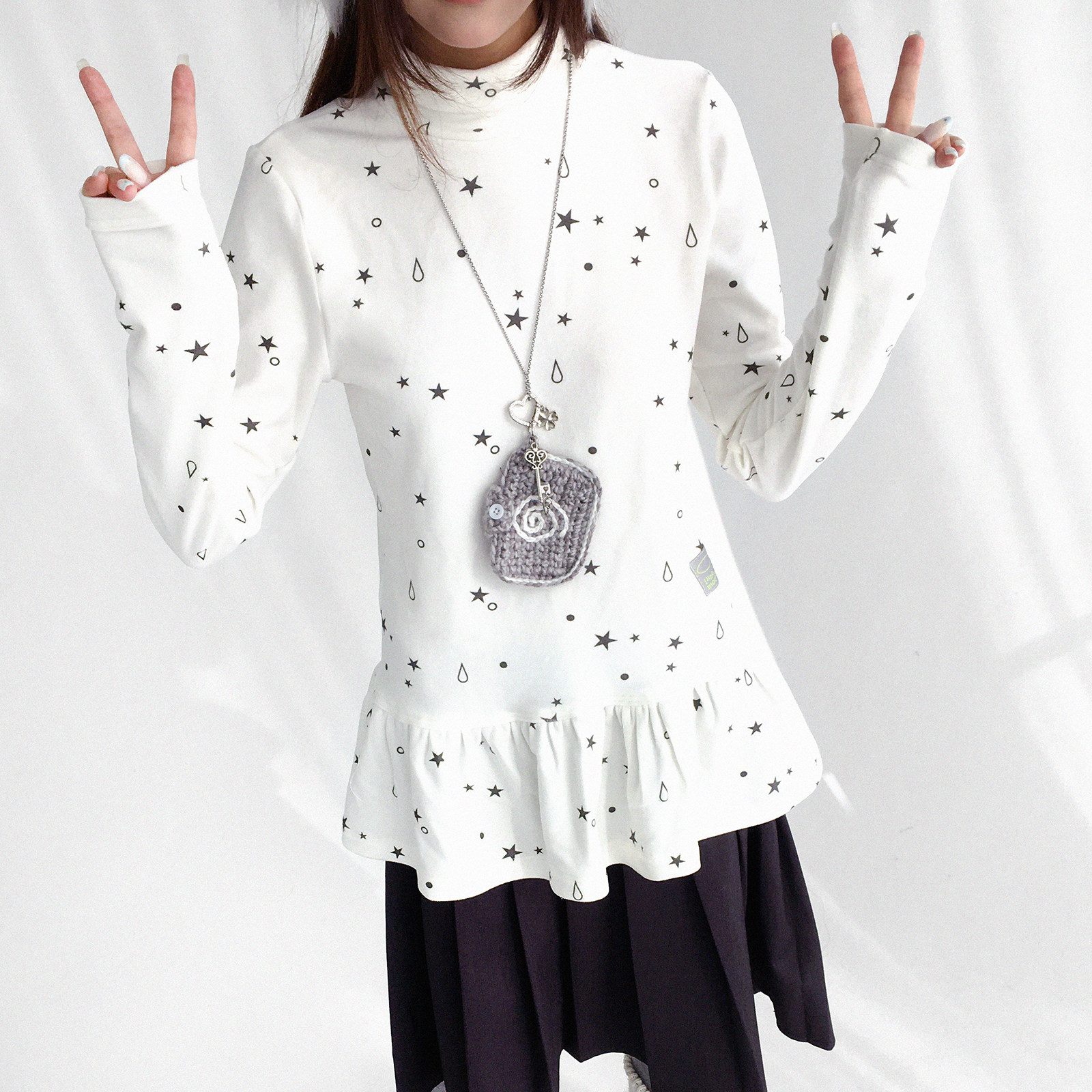 innomoood tears star星星泪滴德绒条纹高领荷叶边打底t恤长袖