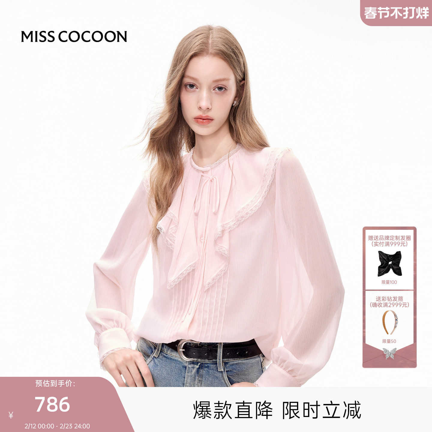 MISSCOCOON可可尼粉色薄款衬衫女2025秋季新款荷叶边打底垂感上衣