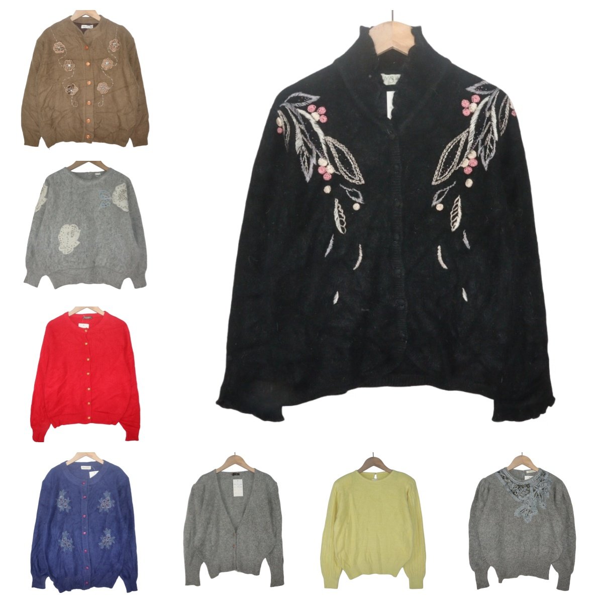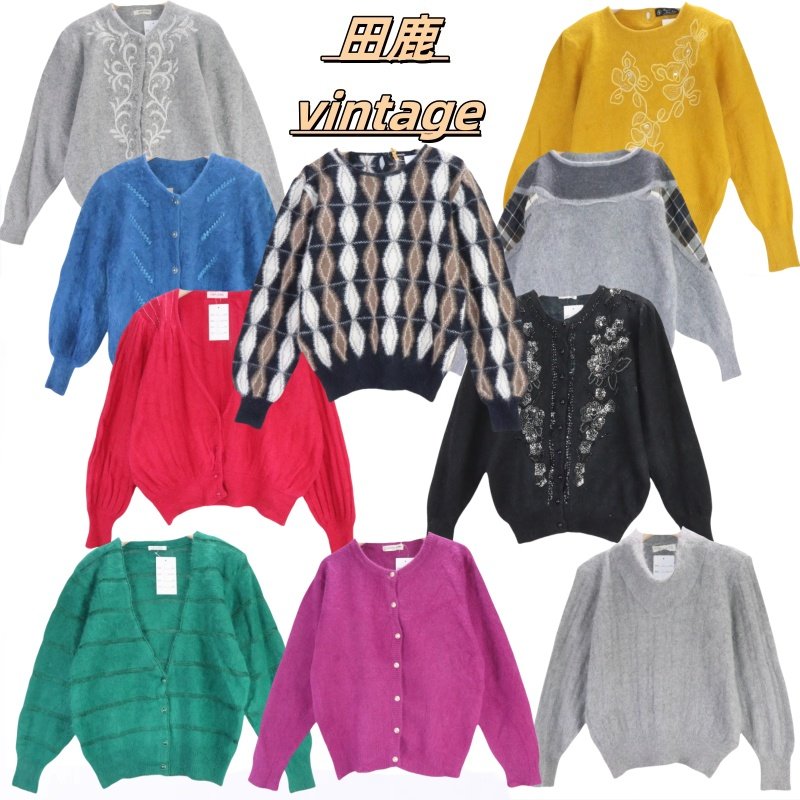 古着vintage孤品安哥拉兔毛文艺学院风软妹钩花钉珠少女毛衣A42