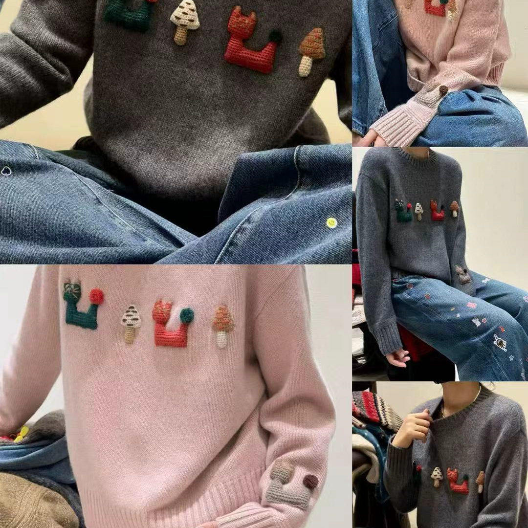 秋冬森系甜美手工立体狐狸蘑菇针织衫女文艺减龄少女毛衣D506