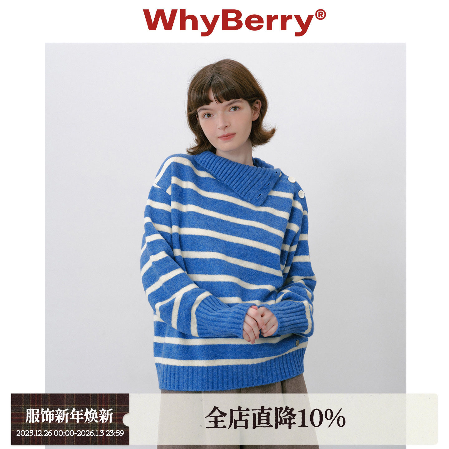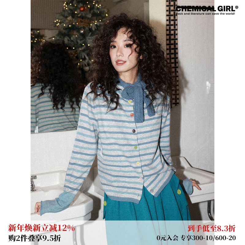 WhyBerry 25AW“少女笔记”复古蓝色条纹毛衣保暖秋冬针织上衣女