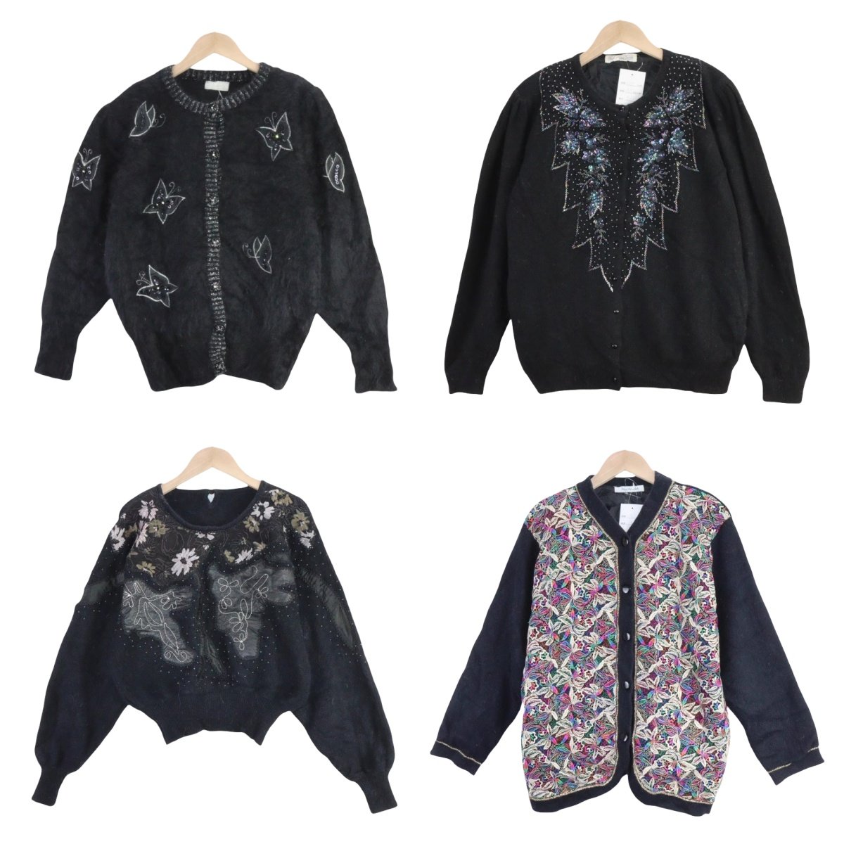 古着vintage孤品安哥拉兔毛文艺学院风软妹钩花钉珠少女毛衣B77