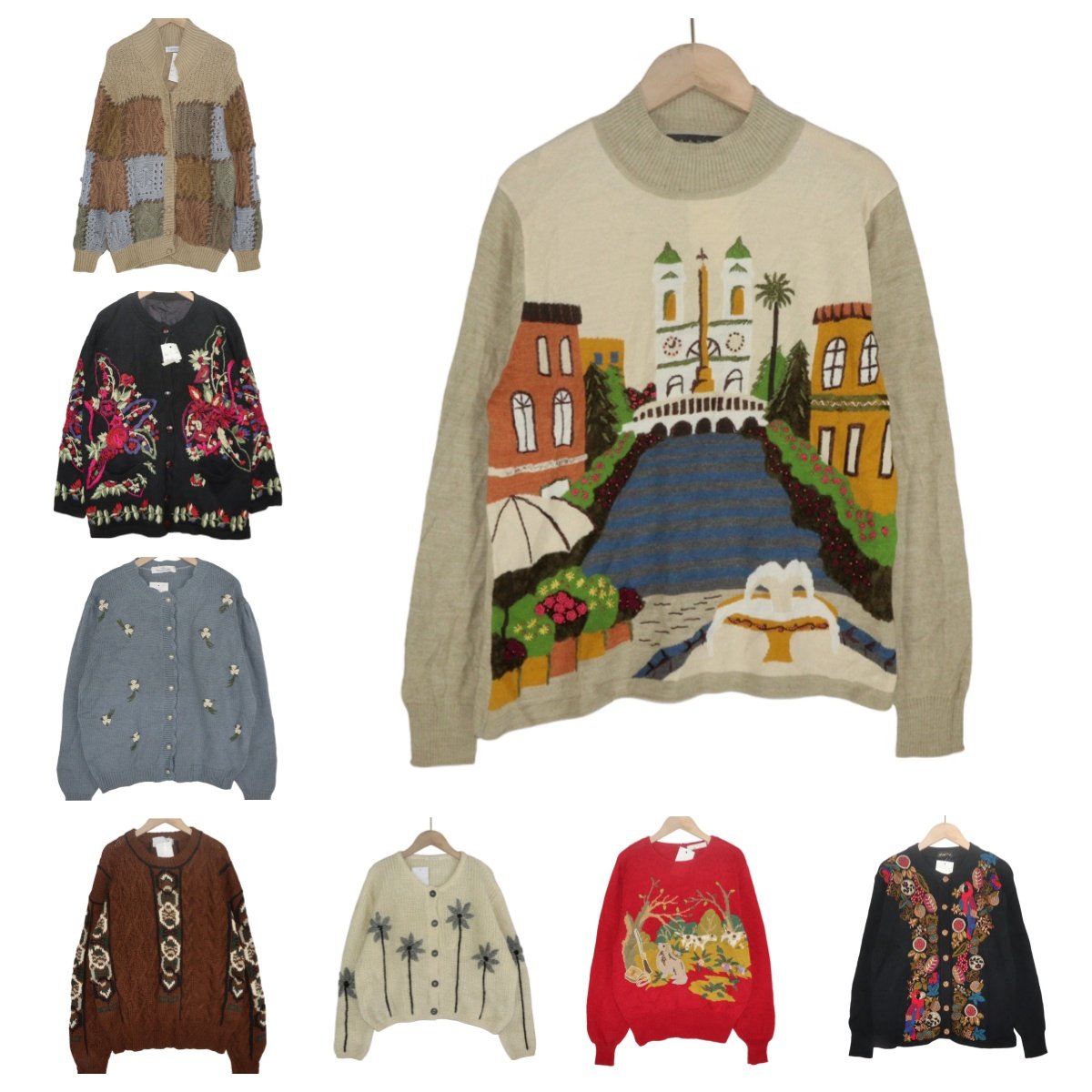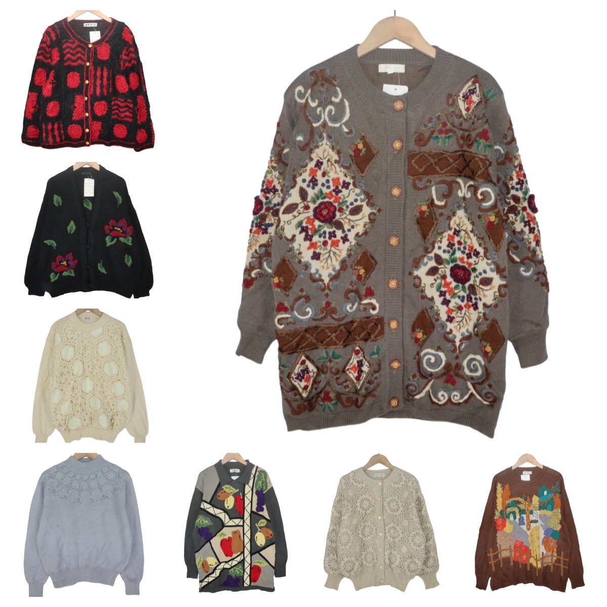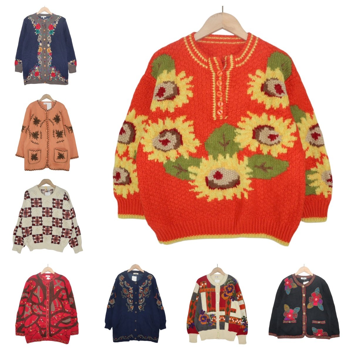 古着vintage孤品羊毛手工钩花复古文艺彩色花朵重工少女毛衣A1