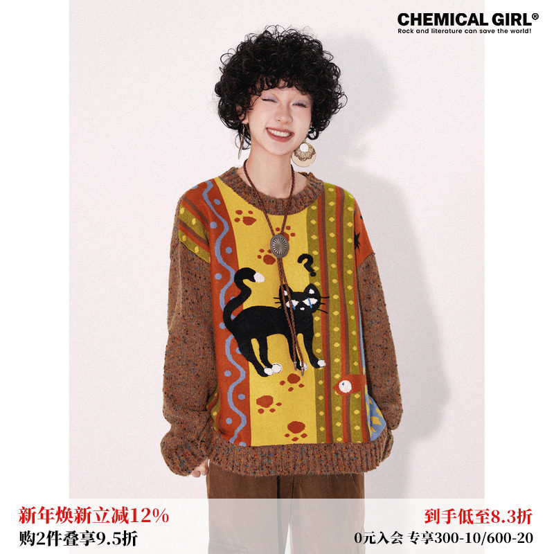 亿万少年国潮日系动漫二次元少女毛衣男女秋冬情侣小众复古针织衫