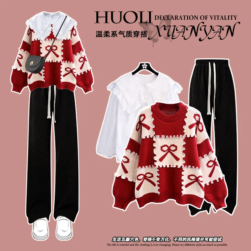 12到13一15岁大童女装冬季套装初中学生少女毛衣内搭裤子三件套潮