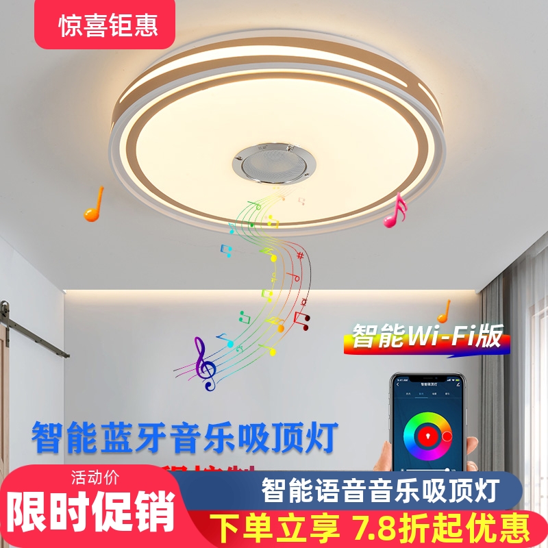 蓝牙灯音乐吸顶灯led圆形音响灯声控卧室灯家用房间智能遥控灯具