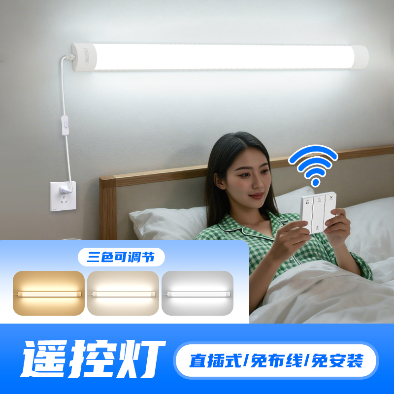 遥控灯条墙壁无线开关卧室房插头插电式照明免布线LED直插式灯管