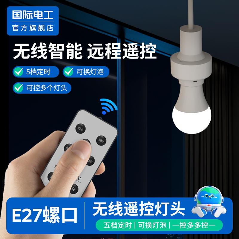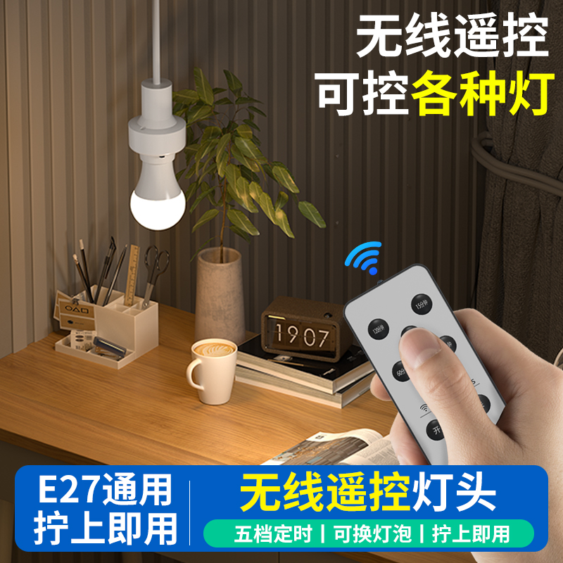 遥控开关无线遥控灯头灯座220v灯家用远程免布线卧室灯泡定时灯口