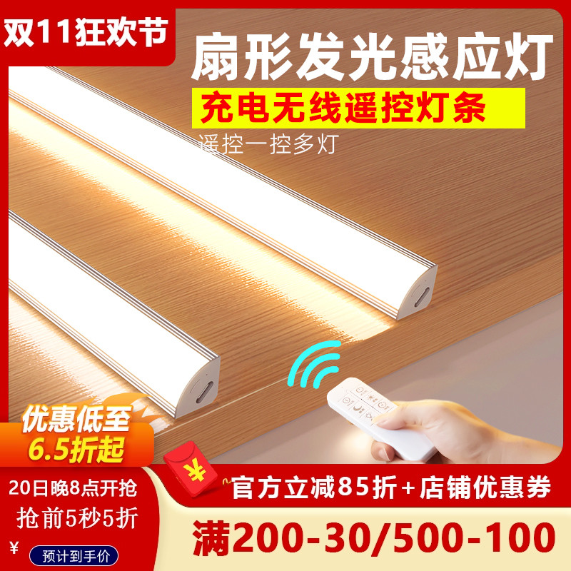 充电遥控灯条 感应免插电直角橱柜灯无线自粘磁吸酒柜衣柜led灯管