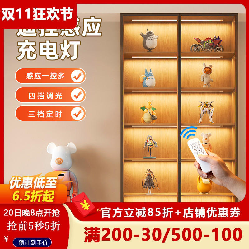 充电led灯带自粘感应无线酒柜灯橱柜衣柜展示柜手办磁吸遥控灯条