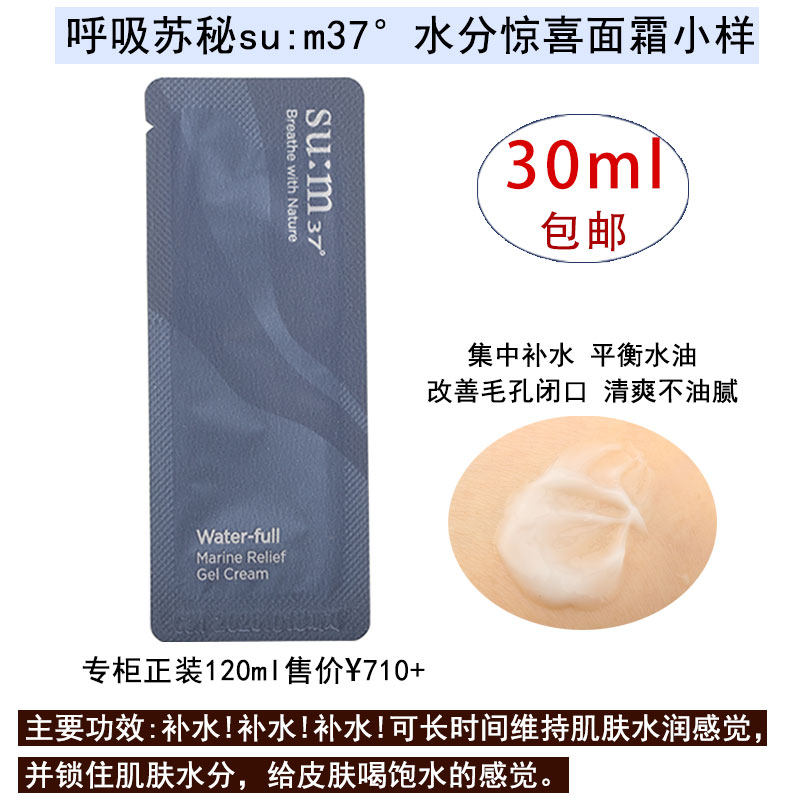 呼吸苏秘惊喜水分面霜小样su:m37°沁润啫喱霜清爽补水保湿不油腻