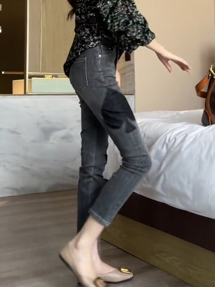 烟灰色牛仔裤女性夏季2025新高腰纤细紧身九点铅笔小脚烟管裤