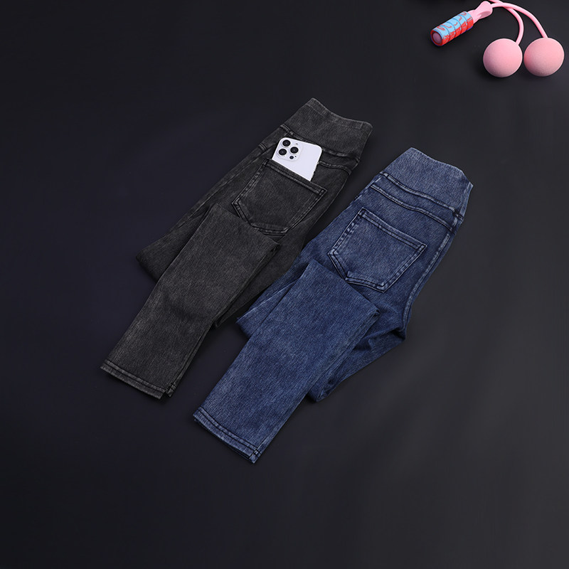 新款蜜桃臀仿牛仔裤女性感高腰收腹紧身显瘦弹力提臀可外穿健身裤