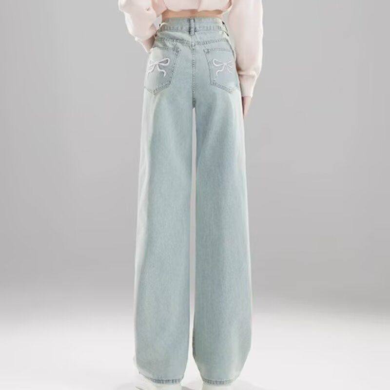 跨境牛仔裤刺绣新款年轻潮流高腰时尚秋季牛仔裤女性蝴蝶结2025子