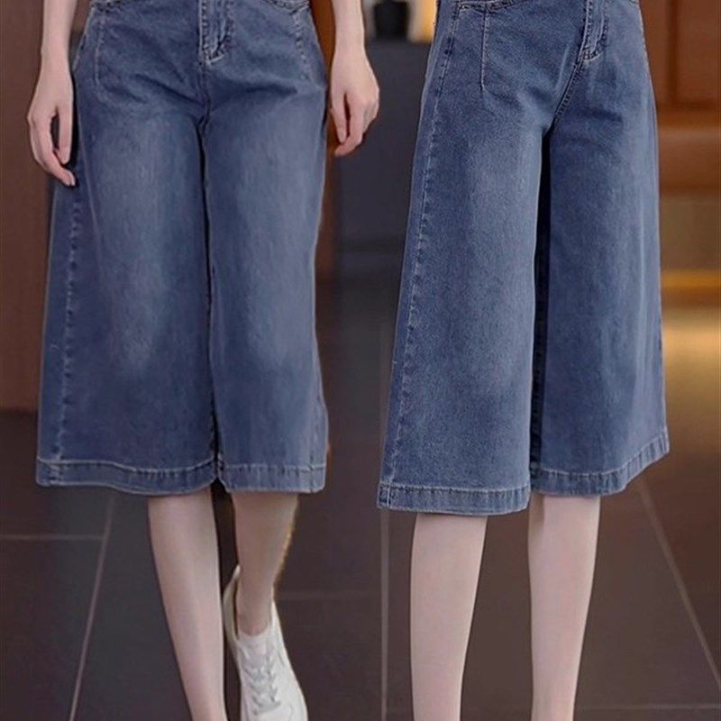高腰宽松的三分之一阔腿牛仔裤女性夏季瘦2025新通用休闲褶皱中裤