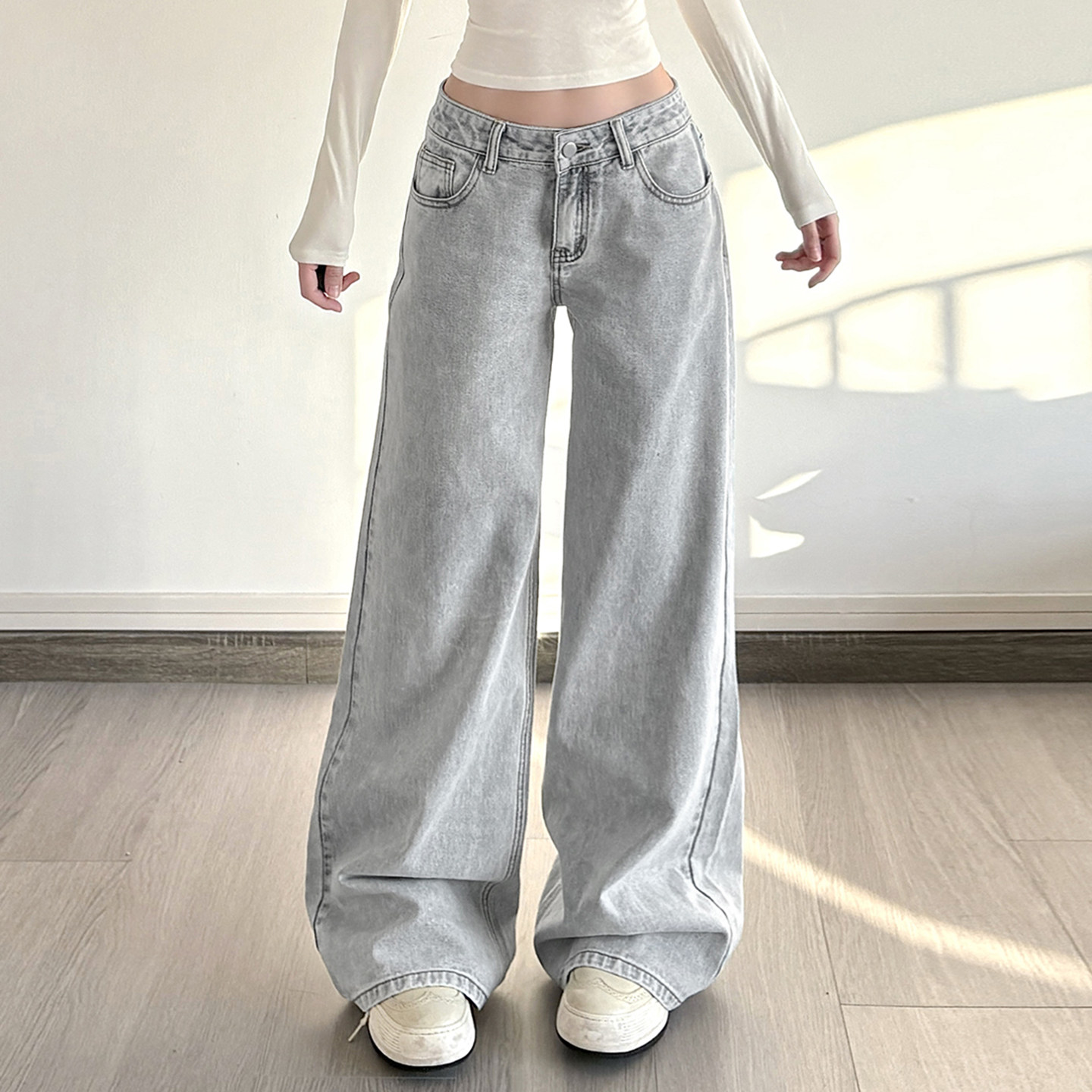 - 直筒阔腿牛仔裤女
