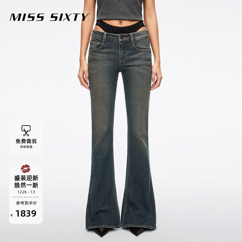 Miss Sixty2025冬季新款复古牛仔裤女性感辣妹比基尼拼接喇叭裤