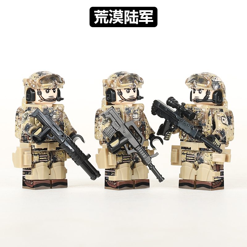 军事小人偶荒漠陆军人仔警察特种兵突击队拼装小颗粒积木玩具兵人