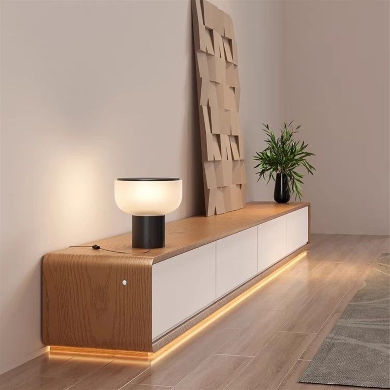 北欧轻奢小户型电视柜茶几组合 椭圆形客厅视听柜 公寓白色地柜