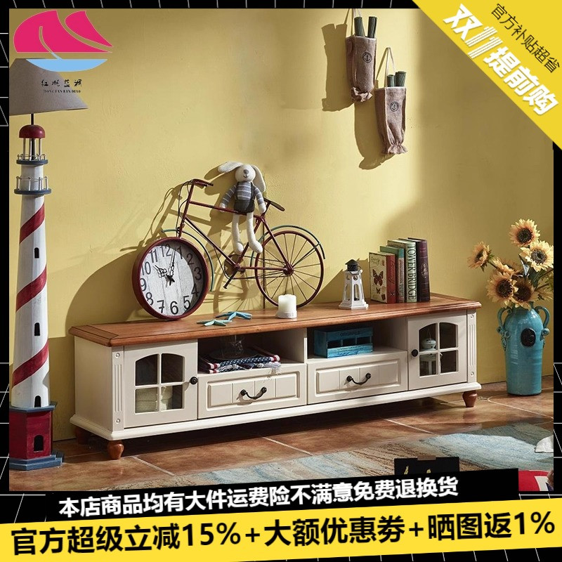 地中海小户型电视柜茶几组合美式乡村实木现代简约田园储物地柜子