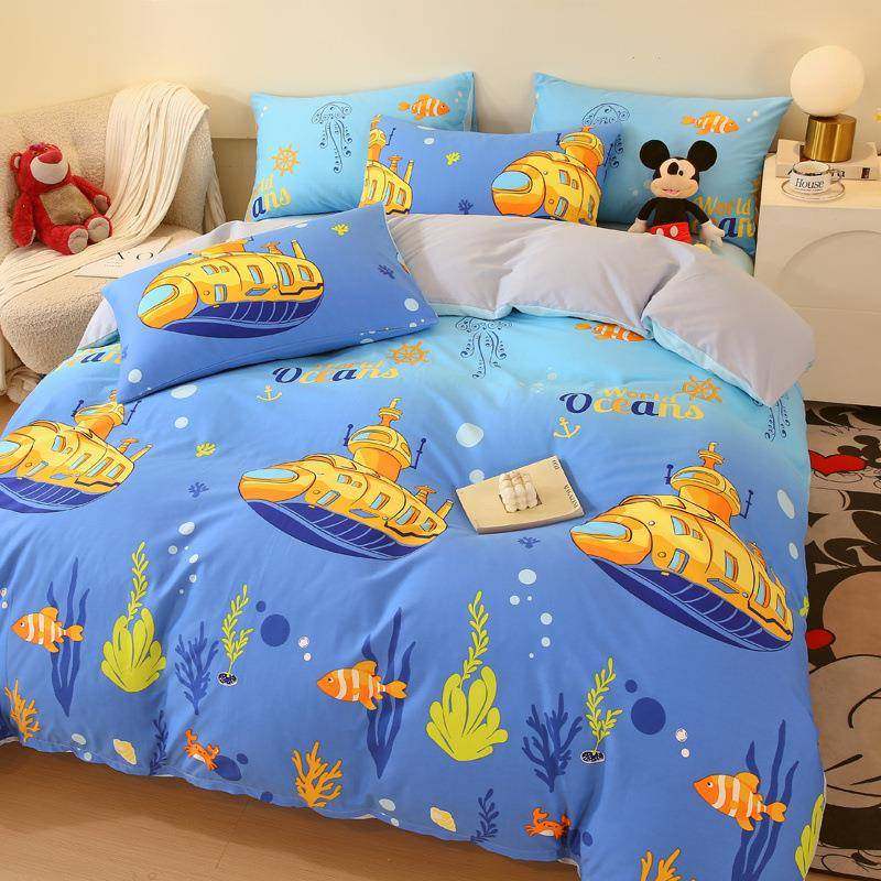 可爱卡通全棉床上四件套100纯棉亲肤儿童被套床单三件套ins风床品