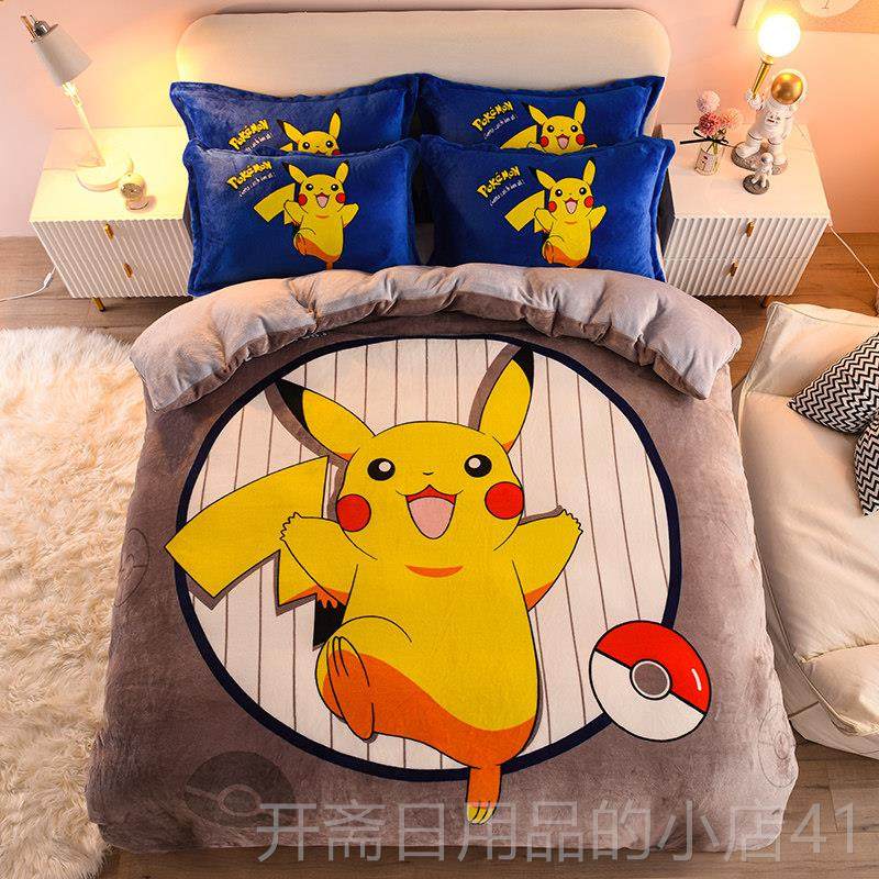 珊瑚绒加绒卡通四件套儿童双面绒牛奶绒被套床单床笠三件套法兰绒