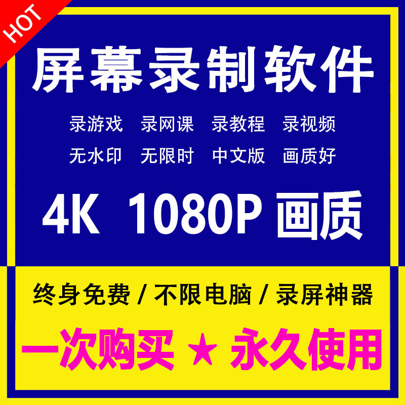 电脑屏幕录制软件4K高清无水印电脑屏幕画面声音录制工具永久使用