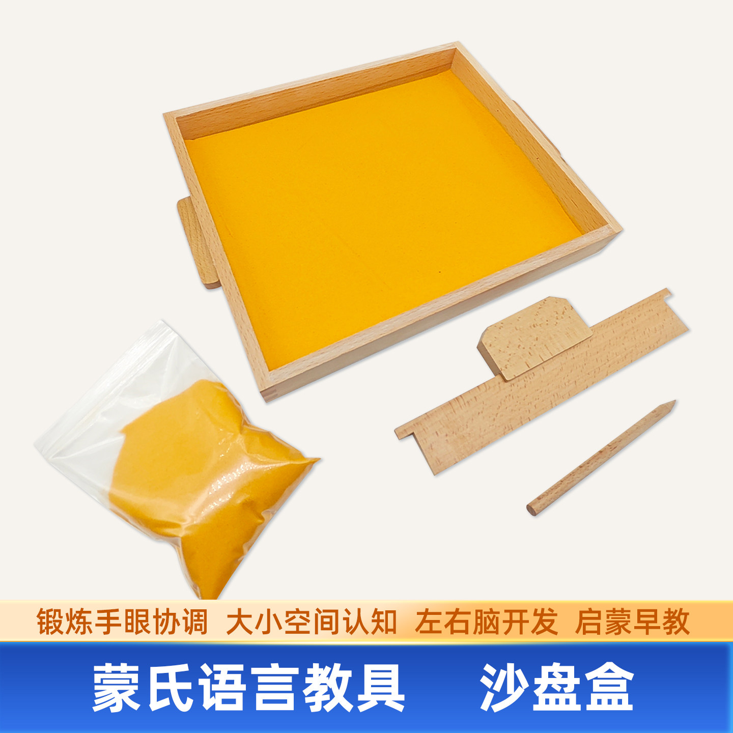 榉木沙盘盒蒙氏教具语言区教具儿童木制木制沙盘沙画托盘书写练习