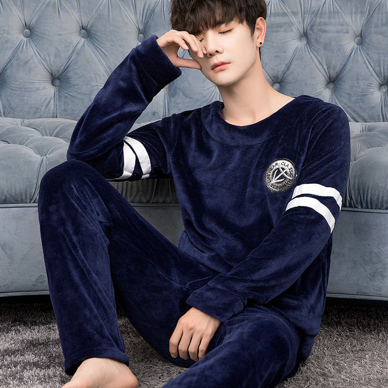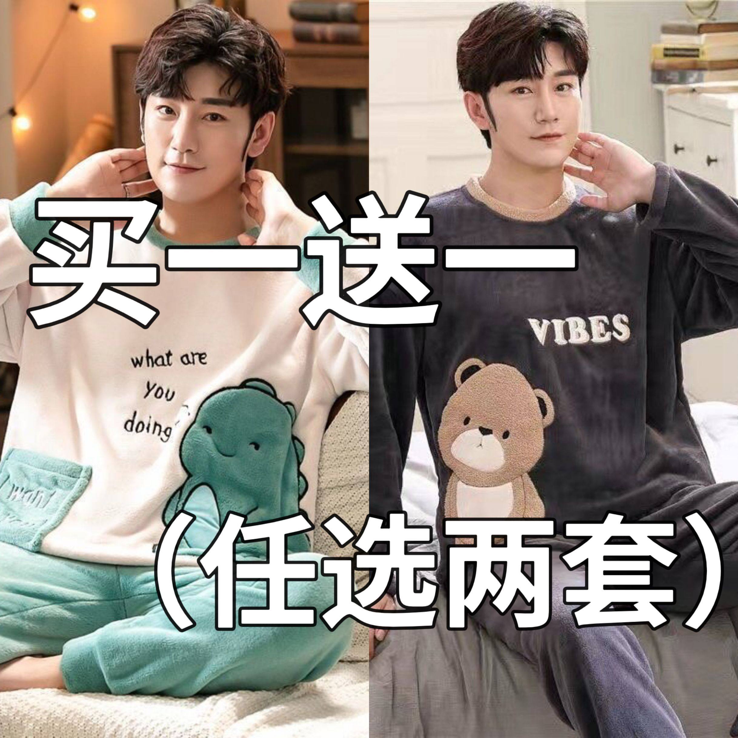 春秋冬款珊瑚绒睡衣男冬季加厚加绒法兰绒男士冬天家居服长袖套装