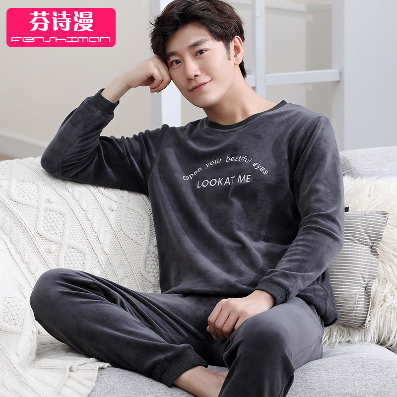 芬腾可秋冬款睡衣男冬季加厚加绒珊瑚绒保暖男士法兰绒家居服大码