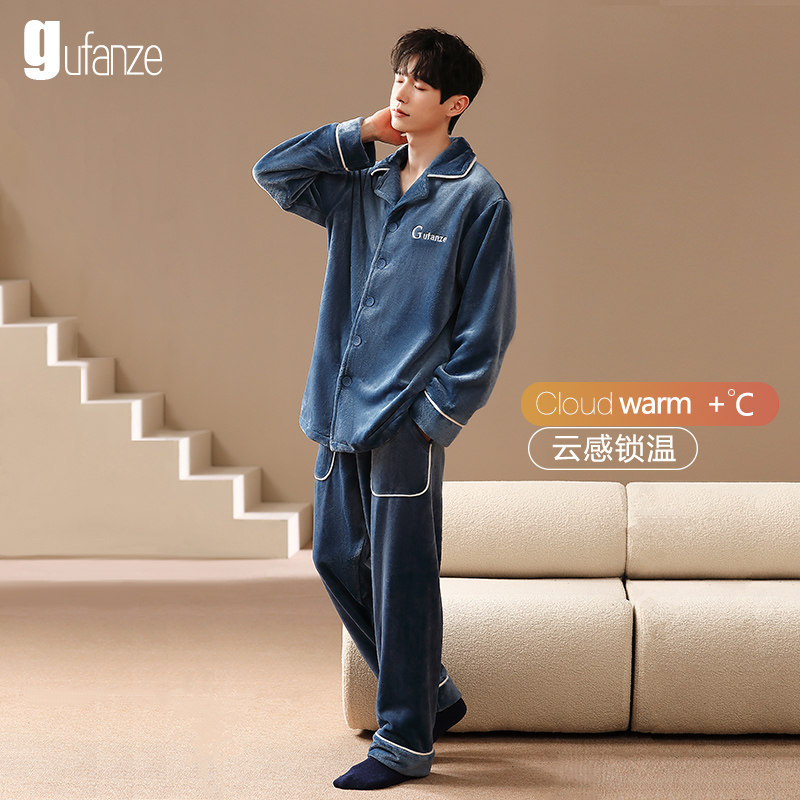 芬腾可安珊瑚绒睡衣男冬季加厚加绒保暖秋冬款法兰绒可外穿家居服