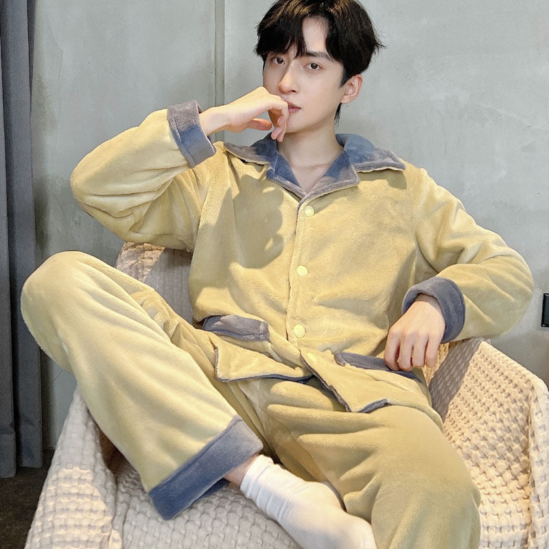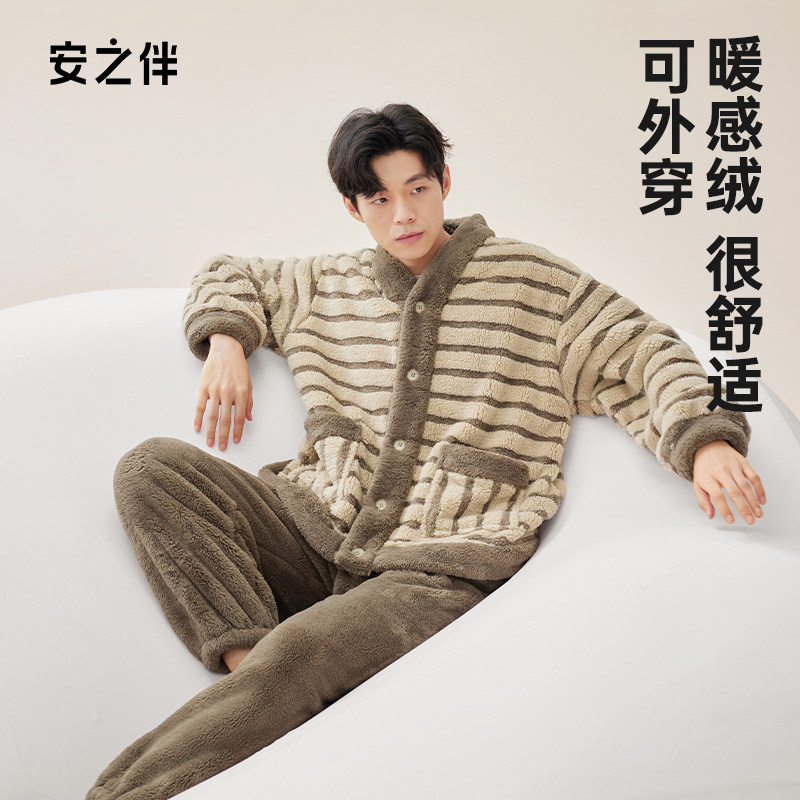 安之伴珊瑚绒睡衣男冬季加厚加绒保暖家居服长袖长裤两件套可外穿