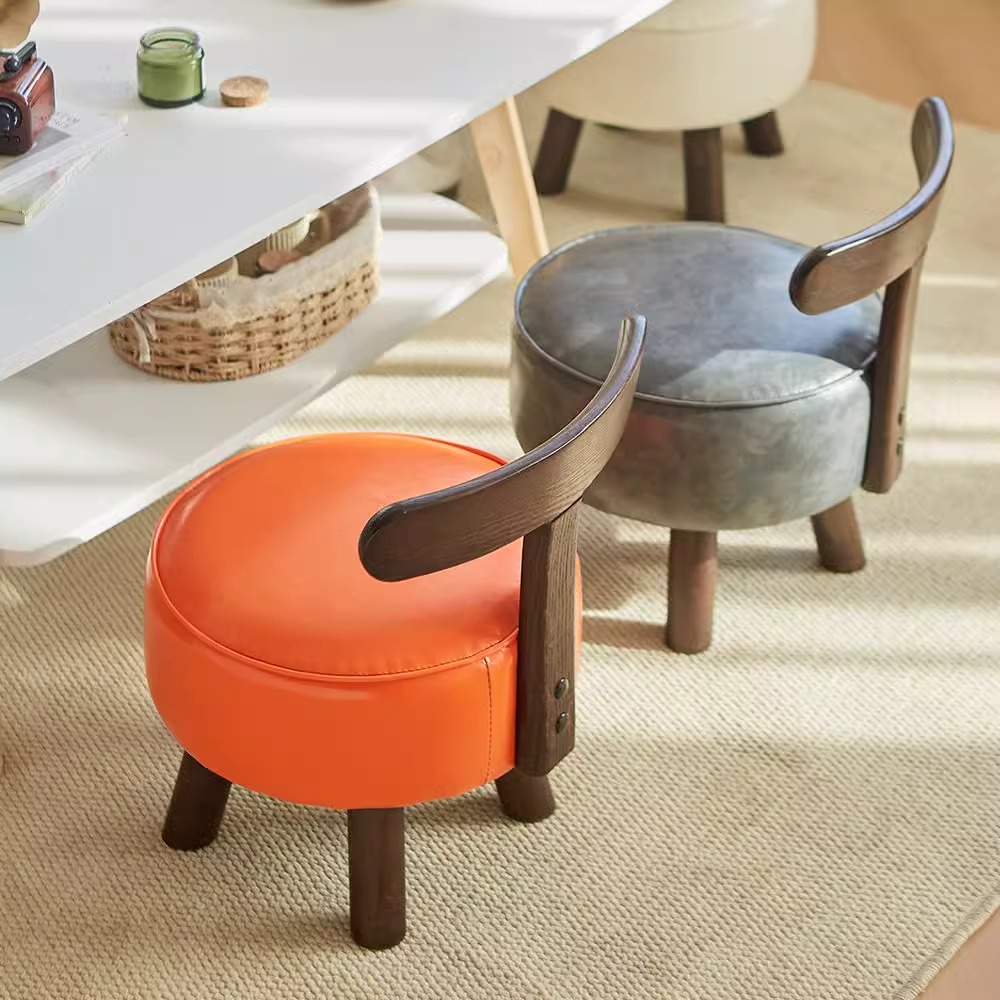 速发矮童小椅子儿小小板凳客厅舒沙发凳实木凳子靠背可旋转家用凳